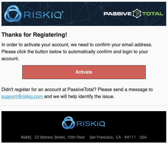 To create a PassiveTotal account, visit https://community.riskiq.com/registration/