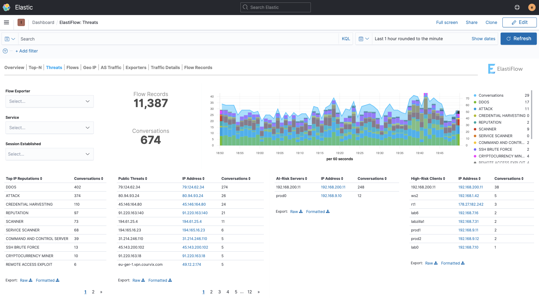 RiskIQ’s PassiveTotal aggregates data from the entire internet, absorbing intelligence from the global attack surface to identify threats and attacker infrastructure and leveraging machine learning to scale threat hunting and incident response. With the ElastiFlow PassiveTotal integration, your organization has outside-the-firewall context into the entities attacking you, their tools and systems, and indicators of compromise — enterprise and third party — all within your ElastiFlow deployment.
