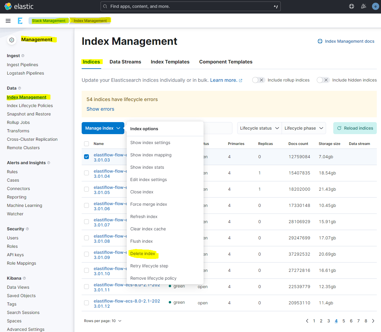 image Select the Index you wish to delete; in this example we will be deleting the oldest index from 2022-12-20